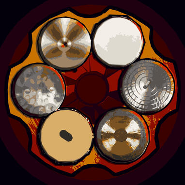 The sounds of an electric drum kit being hit while turned off. Ultimately a dumb idea but plenty of unique percussive sounds.